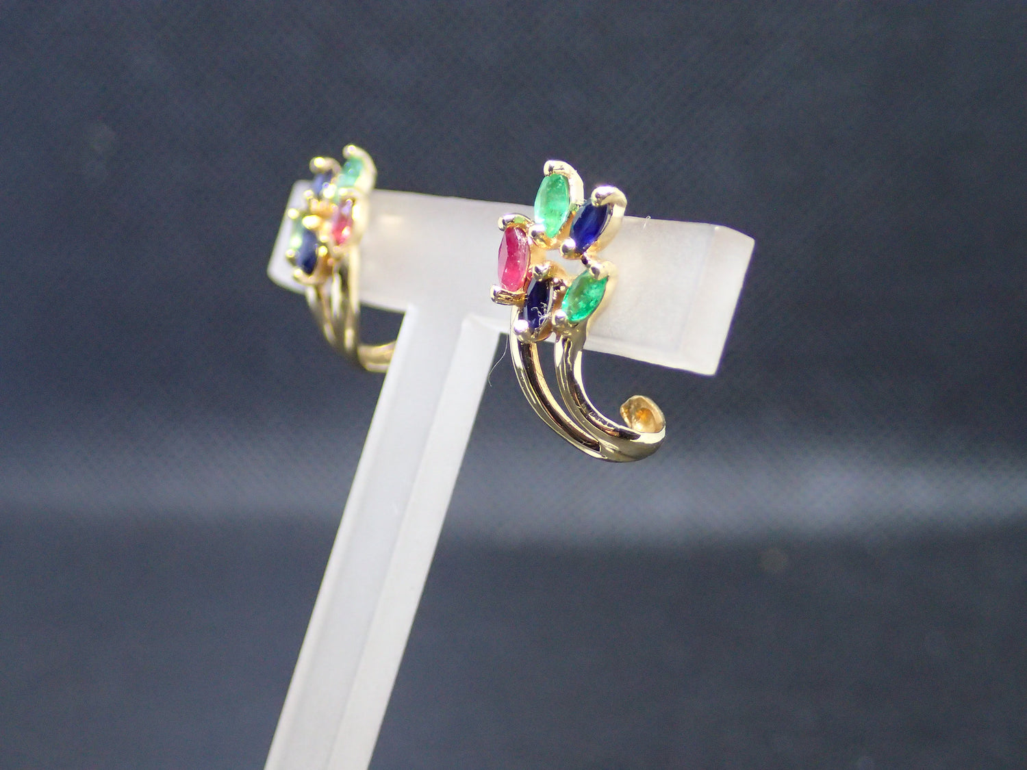 Boucle d'oreille en or jaune 750/ème de 2.54g, émeraude, saphir, rubis/ Bijoux d'occasion